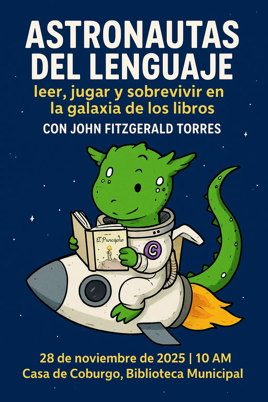 Como invitado especial nos acompañará el escritor colombiano **John Fitzgerald Torres**, quien compartirá con los asistentes la charla **“Astronautas del lenguaje: leer, jugar y sobrevivir en la galaxia de los libros”**, un viaje intergaláctico por la imaginación, la lectura y la creación literaria.