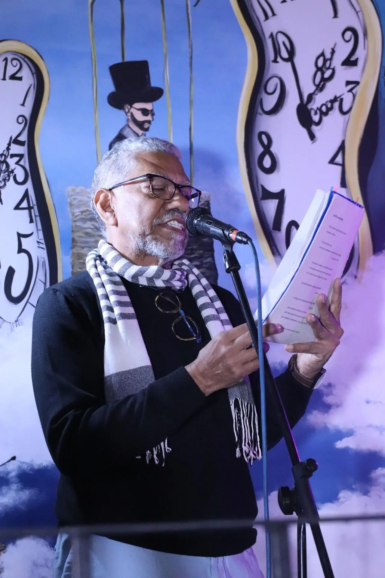 Nuestro agradecimiento al equipo logístico, al maestro de ceremonias, a los artistas y poetas invitados que compartieron su voz, y a todos los asistentes que nos acompañaron en esta celebración de la palabra viva.